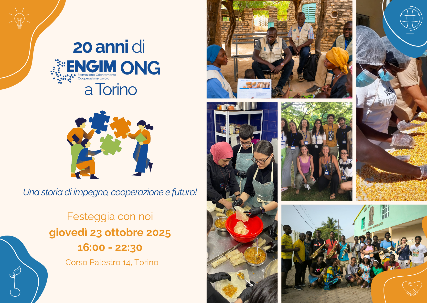 Nel 2005 nasceva la sede piemontese dell’ENGIM Internazionale ONG. Vent’anni dopo vi invitiamo a festeggiare questo importante traguardo insieme a chi ha condiviso con noi questo percorso: partner, amici, collaboratori e sostenitori che hanno camminato al nostro fianco tra formazione, cooperazione e impegno globale.
